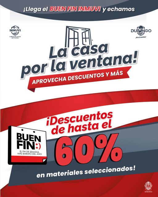 Quienes deseen aprovechar esta venta deberán acudir del 13 al 16 de noviembre de 10:00 a 18:00 horas al Banco de Materiales del INMUVI ubicado en Blvd Durango número 306 en la colonia Lomas del Guadiana con copia de identificación oficial, CURP y comprobante de domicilio