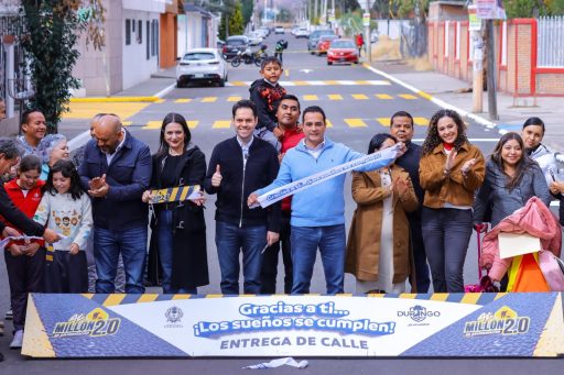 Al entregar la obra, el alcalde Toño Ochoa destacó que este tipo de acciones son el resultado del trabajo en equipo. Adelantó que en los próximos tres años se pavimentarán mil 500 calles, gracias a que en Durango se “jala parejo” para transformar el entorno en acciones que se ven y se sienten.