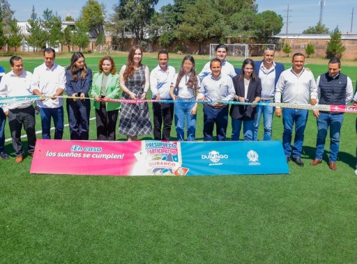 El Presupuesto Participativo sigue cumpliendo sueños, a través de la voz de las y los duranguenses se hacen realidad las obras que por años se esperaron, como en el Cobaed Juana Villalobos, donde hoy las y los estudiantes cuentan con una cancha de fútbol 7 de primera, indicó Toño Ochoa al iniciar la entrega de las obras ganadoras de la tercera edición.