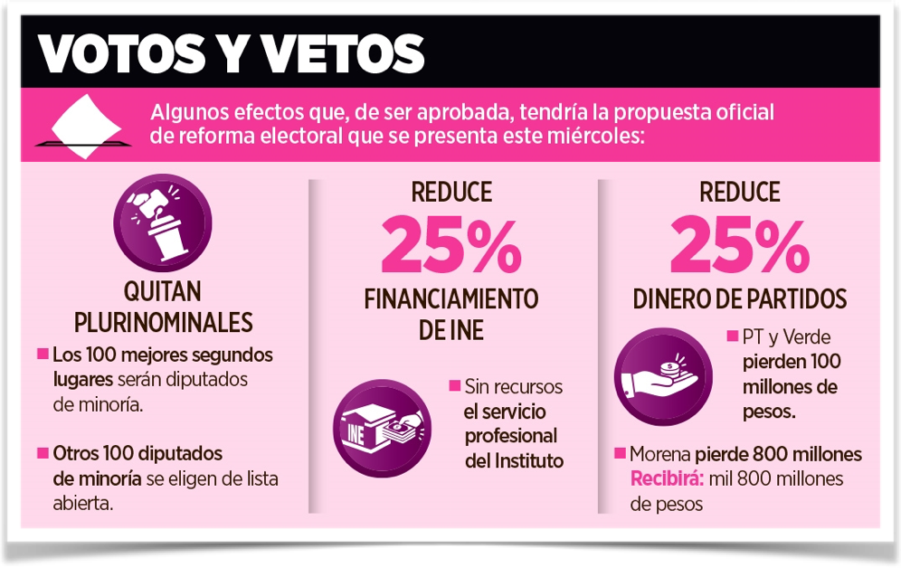 La reforma propone reducir en 25% el gasto electoral: prerrogativas de partidos, operación del INE, organismos locales y propaganda.